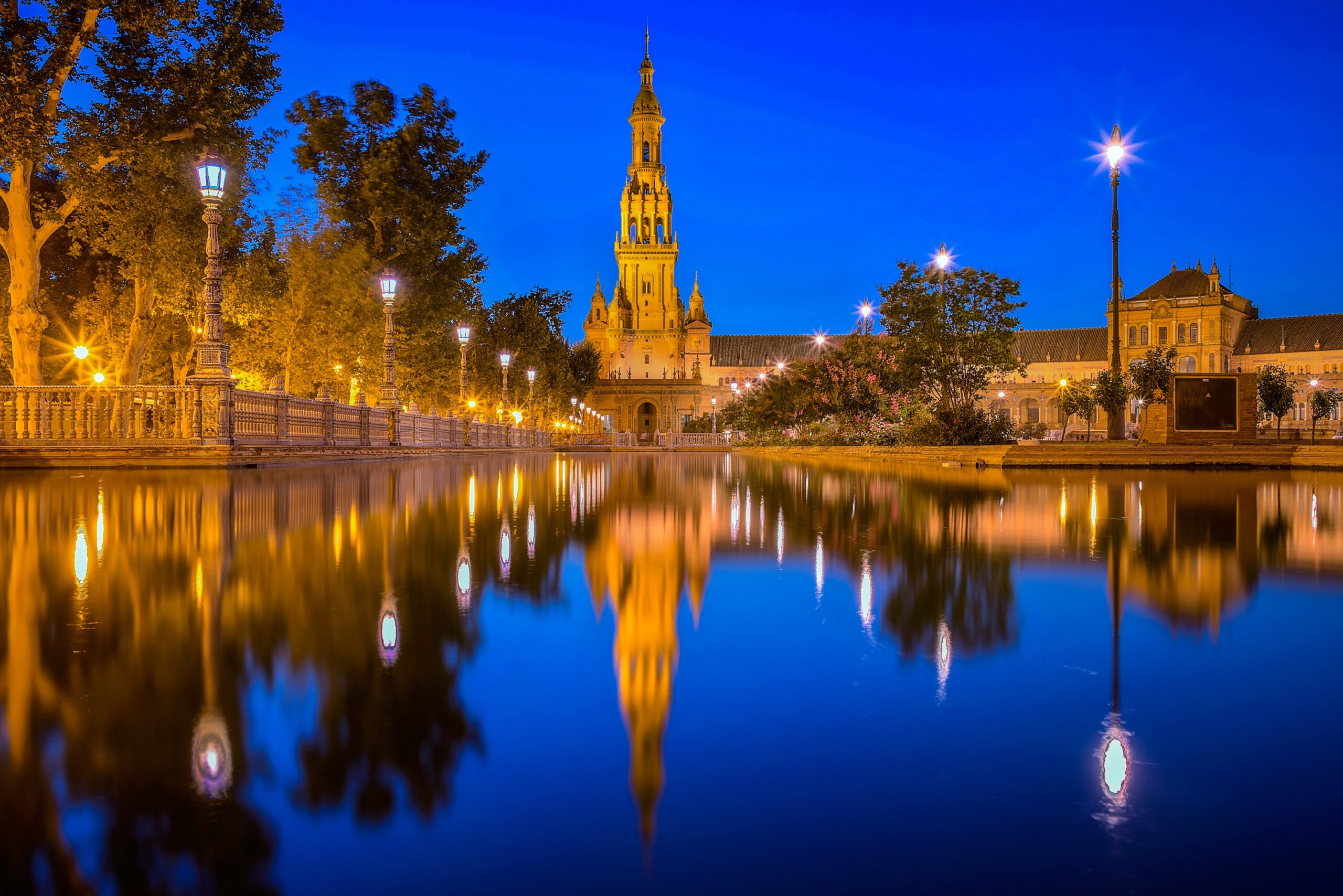 - Plaza de España – place emblématique avec ponts et canaux décoratifs.