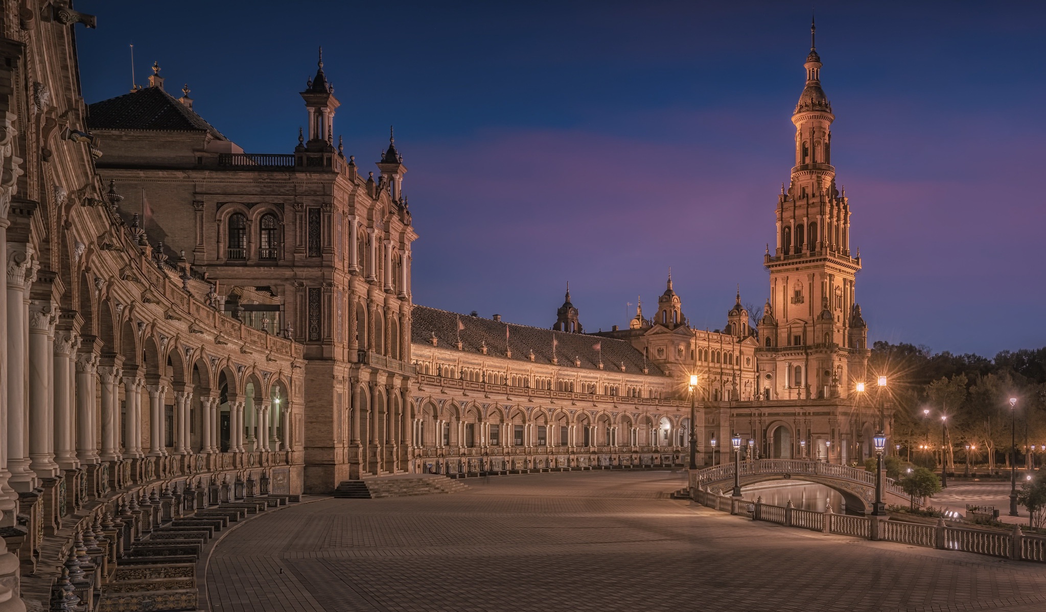 - Plaza de España – place emblématique avec ponts et canaux décoratifs.